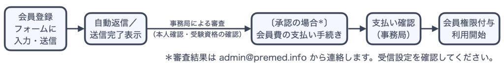 なお、審査結果等のご連絡は 事務局メール(admin@premed.info) から送信いたしますので、迷惑メールフォルダもご確認のうえ、必ず受信できる設定(受信許可・ドメイン指定等)をお願いいたします。